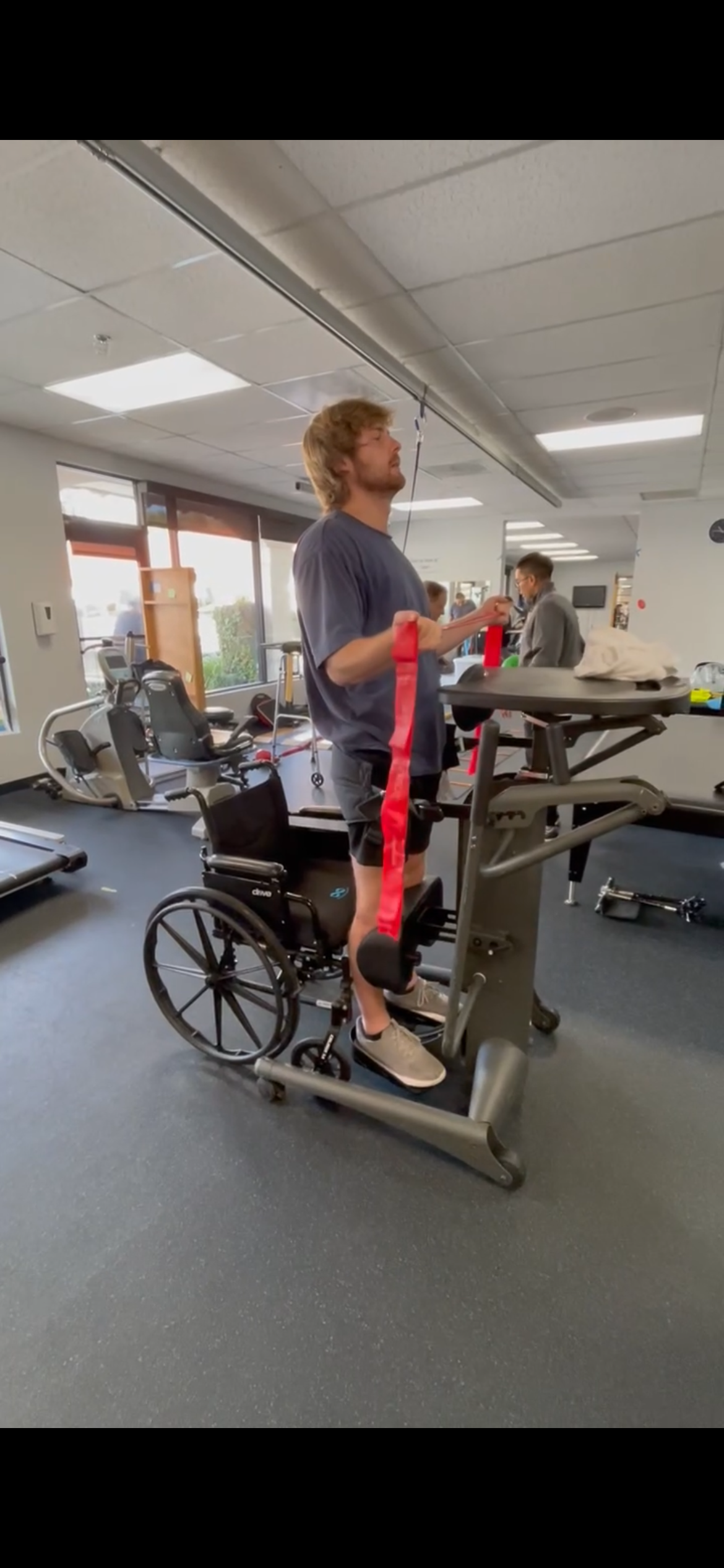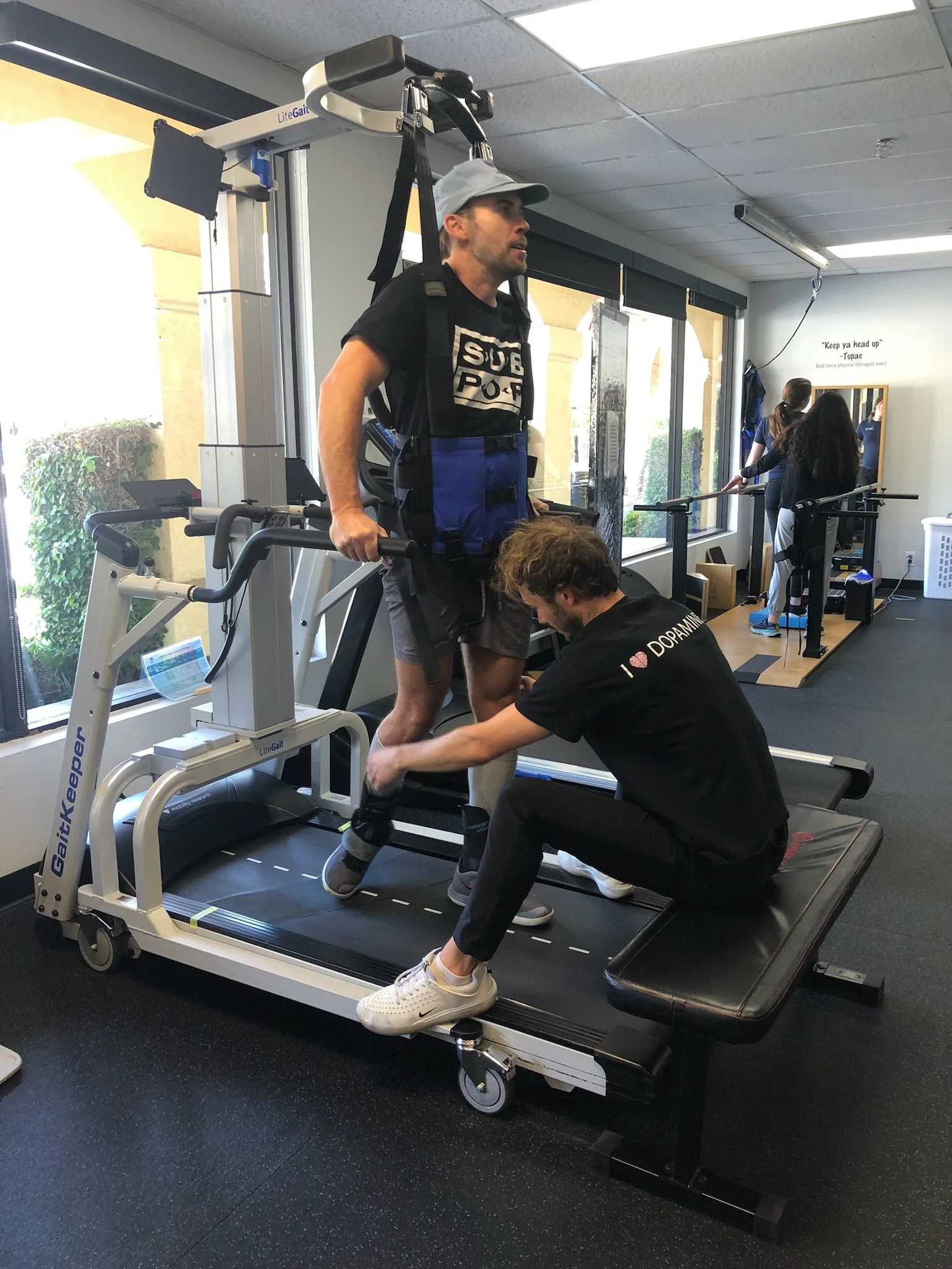 The LiteGait harness and treadmill system provides body-weight support to our patients while they practice walking. It allows individuals to engage in safe, intensive gait training. The biofeedback within the treadmill allows individuals to focus on improving step length and weight shifting.
